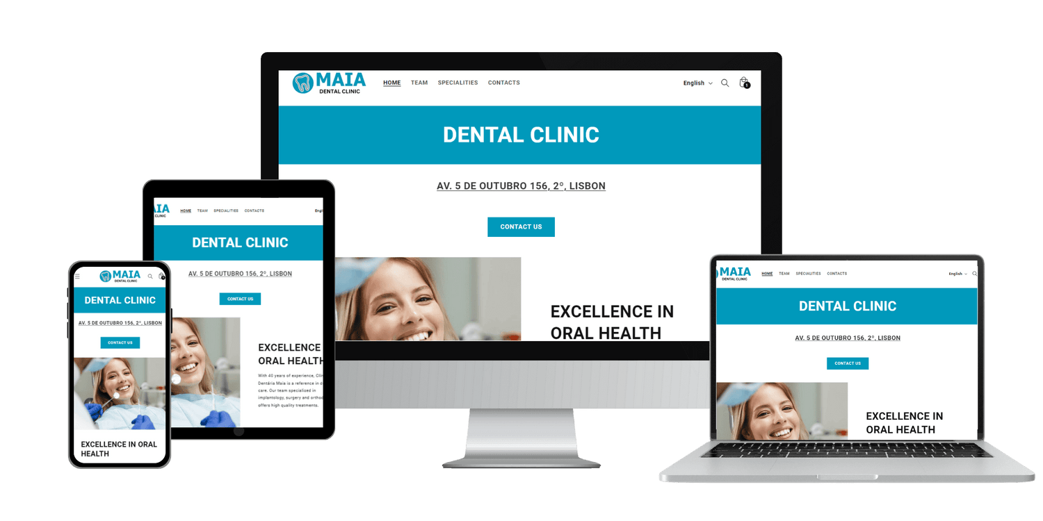 Website de Clínica Dentária. Colocamos websites em diversas línguas, conforme o target pretendido pelo cliente.
